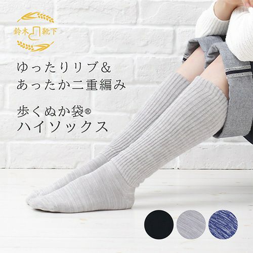 「ふくらはぎの冷えに悩んでいます。締め付けにくい、米ぬか繊維のハイソックスを作って欲しい。」 というお声を沢山頂戴しました。「締め付けない靴下」と同じ構造のハイソックスを作るのは難しい…。けれど、出来るだけ締め付けないで、ズレにくい、温かいハイソックスを作ろう!鈴木社長、工場の職人が試行錯誤して作ったハイソックスです。