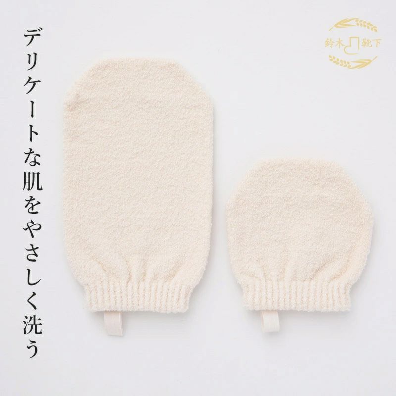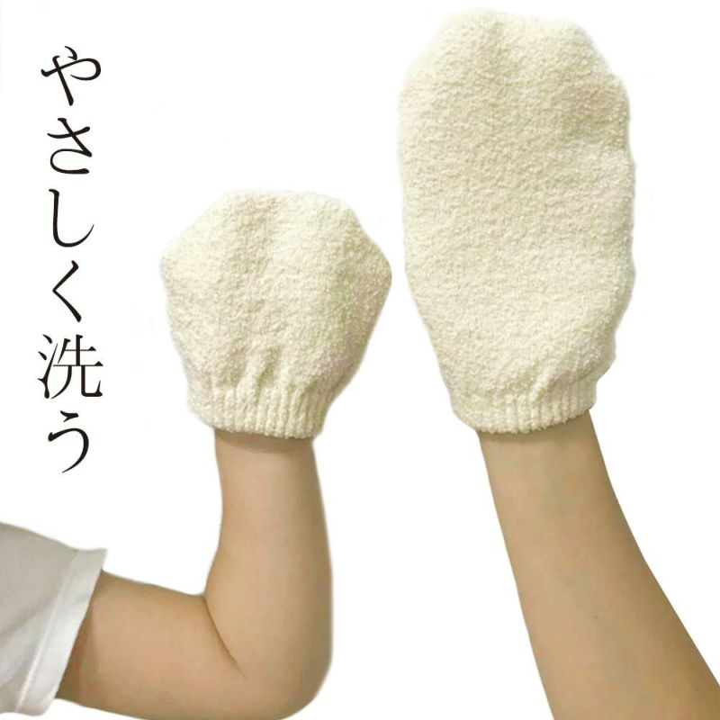 「自分で洗う~!」そんなお子様と一緒に楽しく洗いっこ出来る お風呂ミトンです。一人で洗う時、タオルだと “ぐしゃぐしゃ” に なって上手に洗えない時も…。そんな時「米ぬかお風呂ミトン®」が 便利。着脱しやすいのに脱げにくい。だから、とっても洗いやすい。ふんわり柔らかく、伸縮性のある素材の為、ミトンの中の指が自由 に動かせます。さりげなく仕上げ洗いをしてあげたり、お子様に 背中を洗ってもらったり。仲良く「洗いっこ」して下さい。