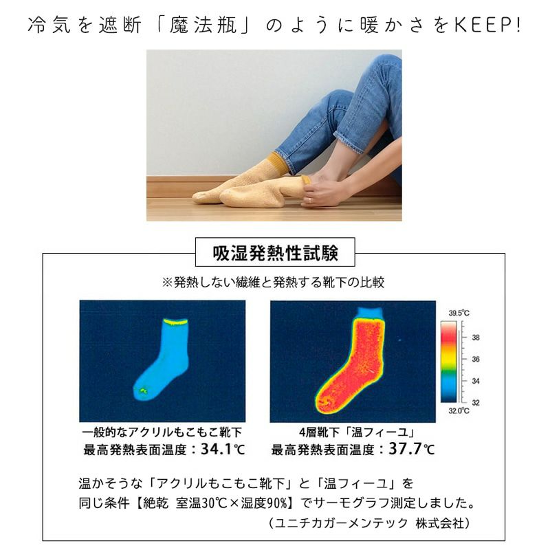 温フィーユ 4層極暖ルームソックス ”少し訳あり”4足セット
