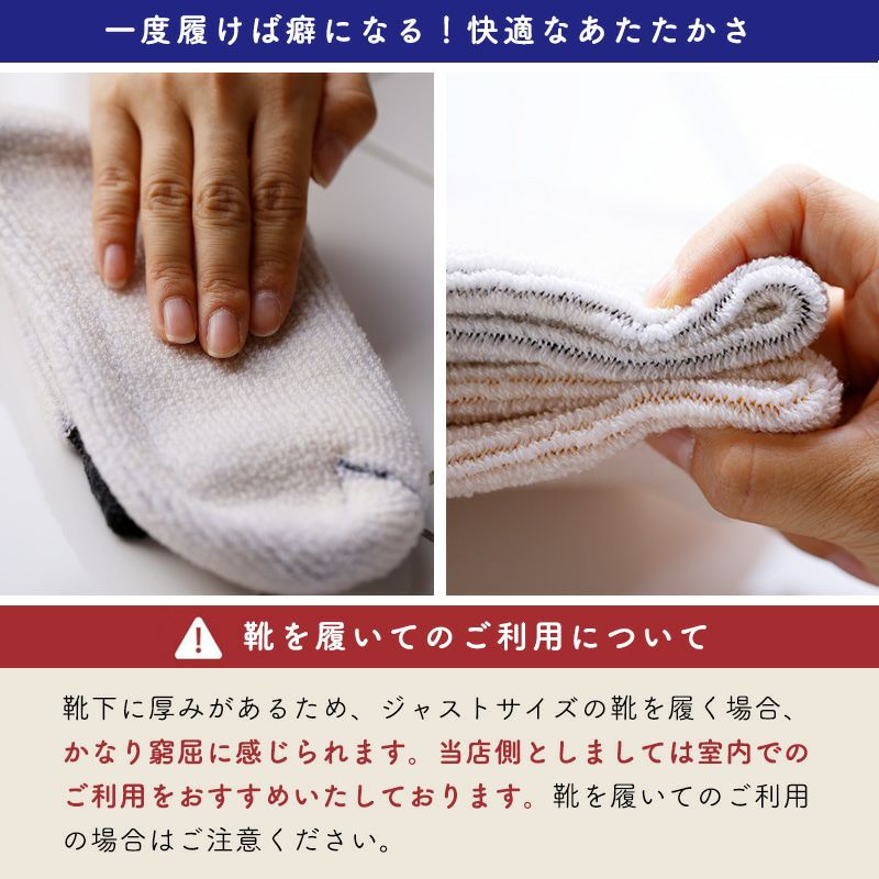 おうち時間をより快適に さらに、消臭機能もあり長時間の着用でも臭いは気になりません。滑り止め加工でフローリングでも安心。もこもこスリッパ、ルームシューズなしでも足元あったか。防寒対策としてだけでなく、おうち時間をより快適に過ごすためのお供としても、寒さに悩まず快適な冬を過ごせます。