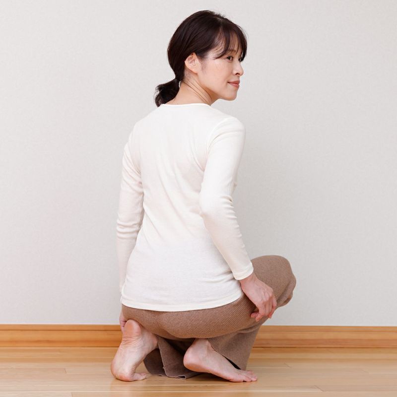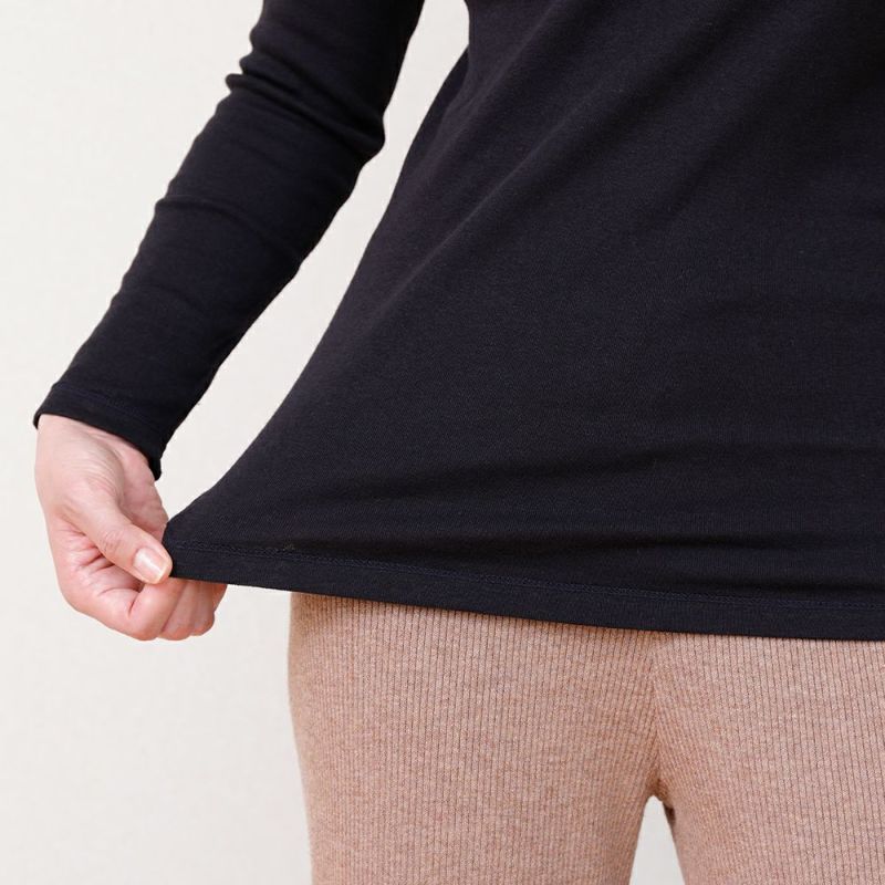 動くたびにインナーが洋服の外に出たり、めくれ上がるのは意外とストレス。着丈を長めに設計しているので、アクティブに動いてもめくり上がりにくく、快適に過ごせます。