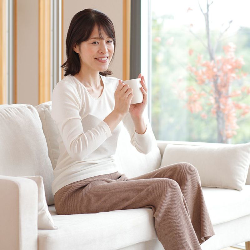 毎日を共にするからこそ。元気な日も、ちょっと疲れた日も、肌に心地よい一枚でいたい。着るたびに安心できる、やさしい一枚。