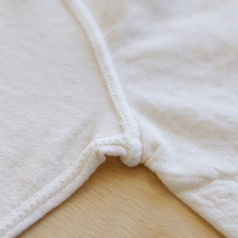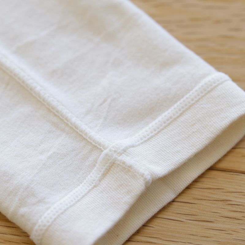 筒状に編立ているので、胴回りに縫い目がありません。服を着たときの肌への刺激をやさしく抑えます。