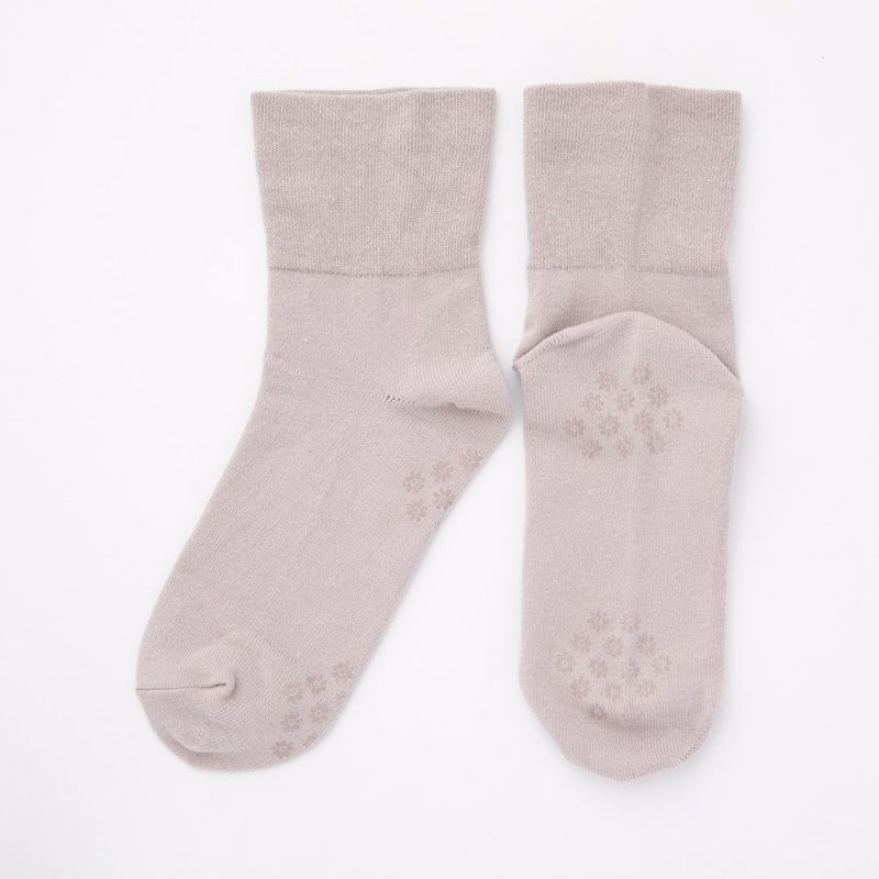 締め付けない靴下 おばあちゃんいかがですか?の足裏部分に滑り止め加工をした靴下です。 こちらの靴下は、甲部分にサポートゴムが入っていません。