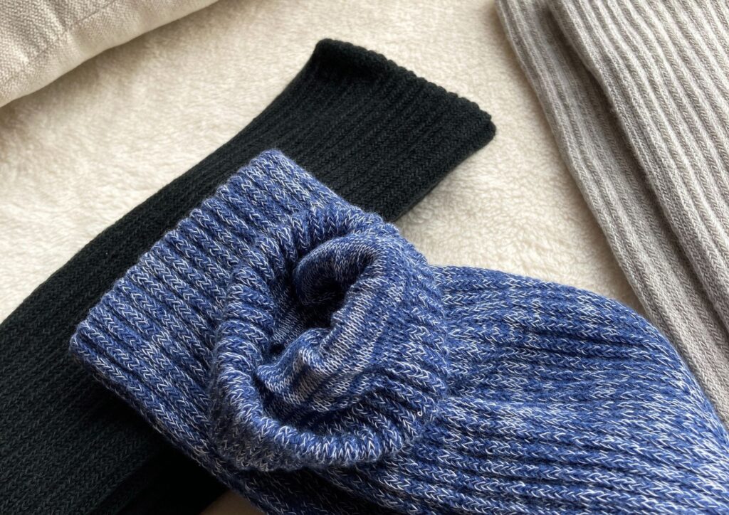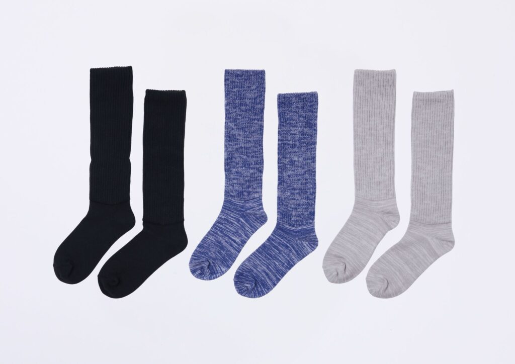 今回ご紹介するハイソックスは、その履きやすさはそのままに、よりすっきりとした厚みを目指して、あえてパイル仕様にはしていません。