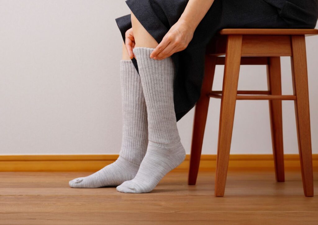 まるでレッグウォーマーをそっと添えたようなあたたかさで、冷えやすい部分をしっかり守りながら、足先はすっきりと軽やかなまま。