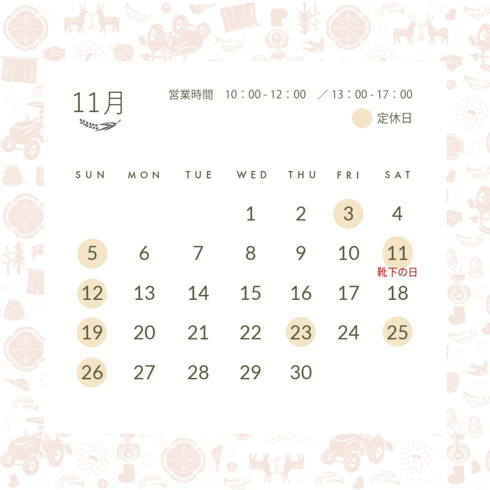 11月の営業日のお知らせです🧦