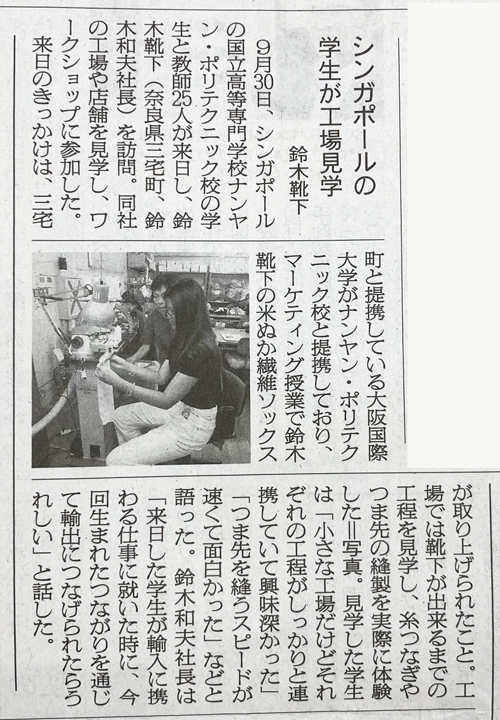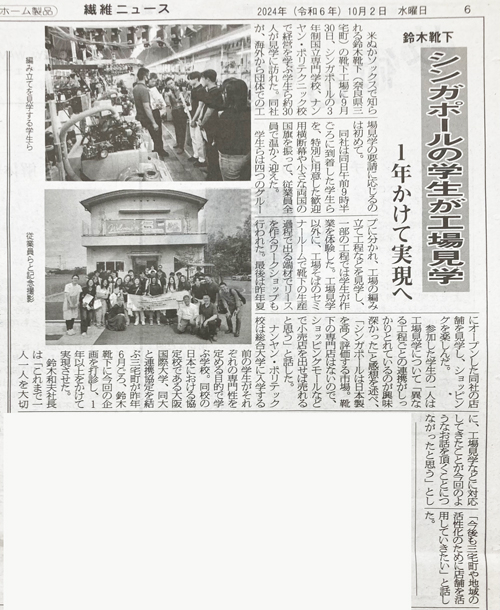 シンガポールの国立専門学校ナンヤン・ポリテック校で経営を学ぶ学生の方々が来社された様子を掲載いただきました。