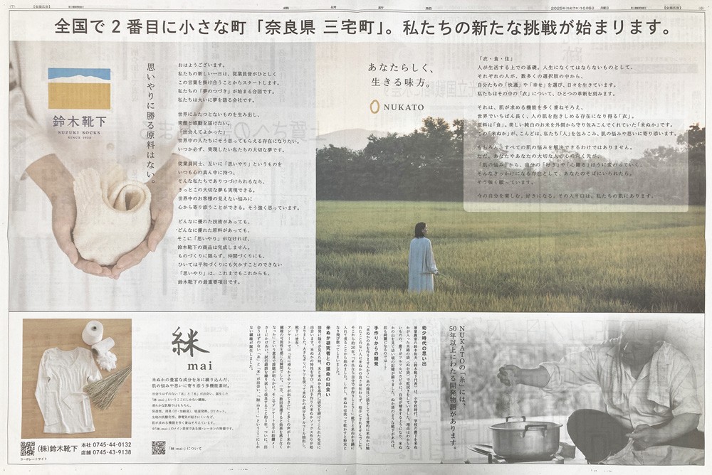 鈴木靴下の新たな挑戦をお伝えする全面広告を掲載いたしました。