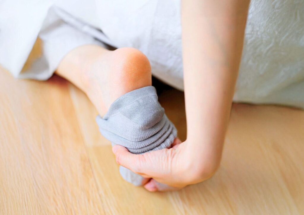 かかとの乾燥が気になる方に向けた、やさしい履き心地のケア靴下です。