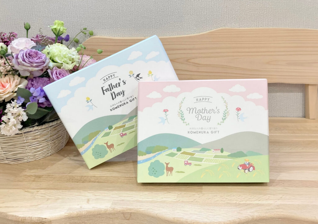 母の日・父の日のオリジナルパッケージやギフトパッケージに、メッセージカードを添えてお包みします。